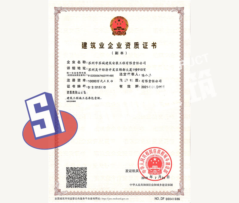 蘇州市蘇城建筑安裝工程有限責(zé)任公司,擁有主項建筑工程施工總承包一級資質(zhì),增項市政公用工程施工總承包二級資質(zhì)和建筑裝修
